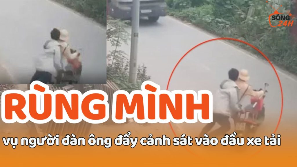 Rùng mình cảnh người đàn ông đẩy cảnh sát giao thông vào đầu xe tải