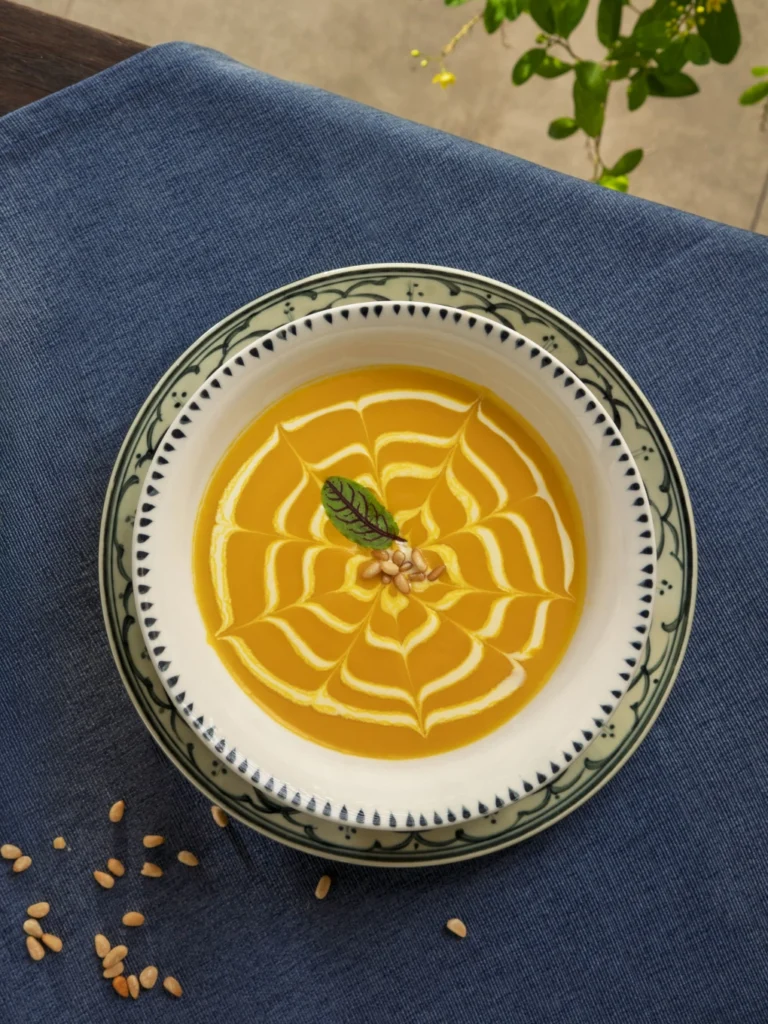 - Muối, tiêu, nhục đậu khấu (tùy thích), bí đỏ rang và dầu ô liu để trang trí