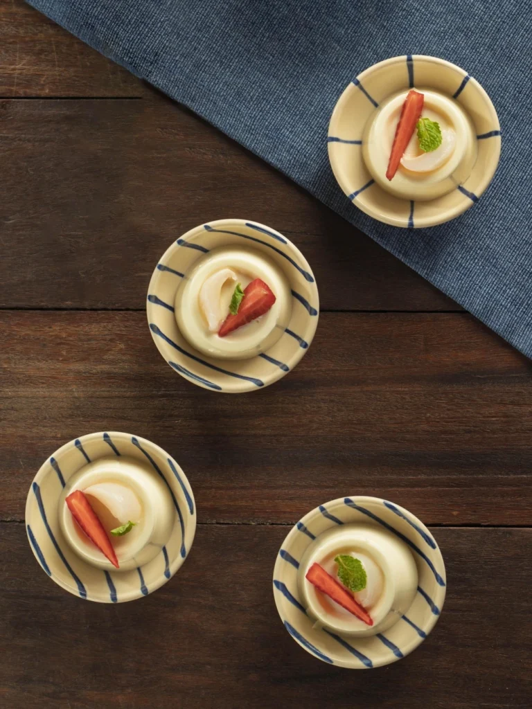 Điểm lạ: panna cotta bản chay thường khó đạt độ “rung rinh”. Dùng agar-agar liều lượng nhẹ + sữa đặc thuần chay cho miệng cảm vừa đứng vừa mịn.