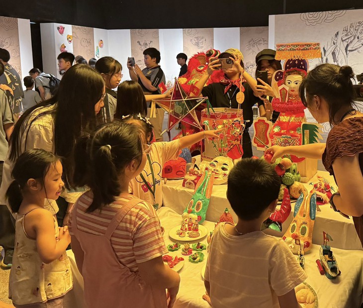 Tâm điểm của chương trình là đồ chơi Trung thu truyền thống—những biểu tượng gắn với ký ức nhiều thế hệ như đèn kéo quân, đèn ông sao, ông tiến sĩ giấy, tò he, mặt nạ giấy bồi, bộ phỗng đất, con giống bột… Các em nhỏ không chỉ được quan sát mà còn tự tay làm đồ chơi dưới sự hướng dẫn của nghệ nhân dân gian, lắng nghe câu chuyện về chất liệu, kỹ thuật và ý nghĩa văn hóa của từng món.