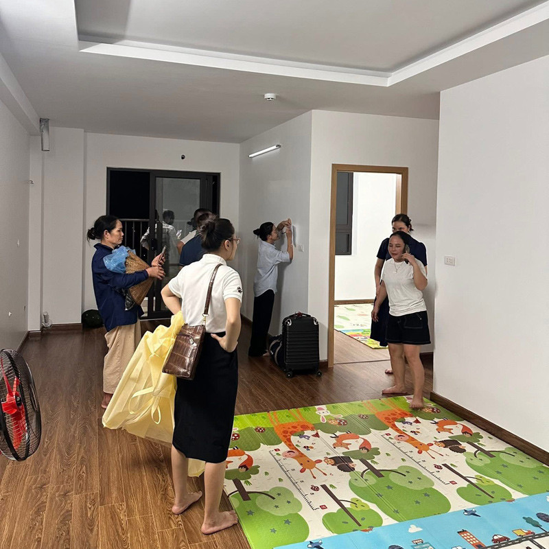 Không chỉ có nhà nghỉ của chị Thảo Nguyên, một doanh nghiệp bất động sản trên địa bàn cũng mở cửa 10 căn hộ trống tại khu chung cư Tecco Elite City để đón người dân. Đến sáng 08/10, 45 người đã vào ở tạm, có nhân viên hướng dẫn, bố trí vật dụng thiết yếu và hỗ trợ di chuyển đồ đạc.