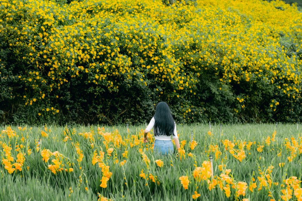 Mùa năm nay ghi dấu đường vành đai hồ Tuyền Lâm – hướng về khu du lịch Thác Bảo Đại – Huyền Trân Công Chúa (phường Xuân Hương) – như một tọa độ ngắm dã quỳ mới đang được nhiều người ưa thích. Theo gợi ý từ giới nhiếp ảnh, ngay từ đầu tuyến vành đai này, du khách có thể rẽ vào một lối đất chừng 400 m để bắt gặp những khóm dã quỳ cao lớn, nở rộ ở làng Quảng Thừa – một góc “check-in” vừa lạ vừa gần thành phố.