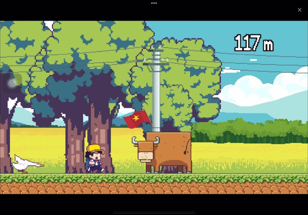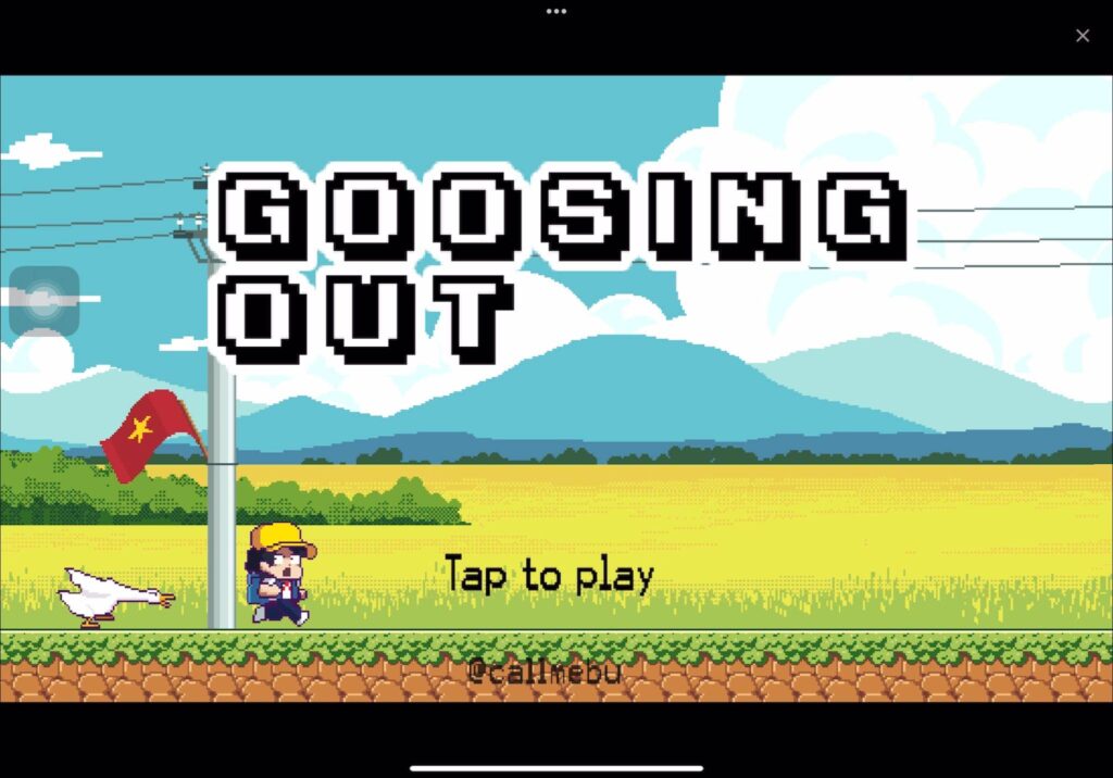Goosing Out khai thác bối cảnh làng quê Việt Nam quen thuộc, với nhân vật chính liên tục bỏ chạy trước sự truy đuổi của một con ngỗng dữ. Trong lúc chạy, người chơi phải khéo léo điều khiển nhân vật né các vật cản rất “đời thường” như đống rơm, chú chó đang ngủ, đồng thời tận dụng những ly nước mía xuất hiện dọc đường để tăng tốc, tạo nên nhịp chơi vừa gấp gáp vừa thú vị. Hình ảnh làng quê, ngõ xóm, những chi tiết gần gũi này khiến nhiều game thủ khi trải nghiệm Goosing Out cảm thấy bồi hồi, như được gợi lại ký ức tuổi thơ gắn với ruộng đồng và sân nhà.