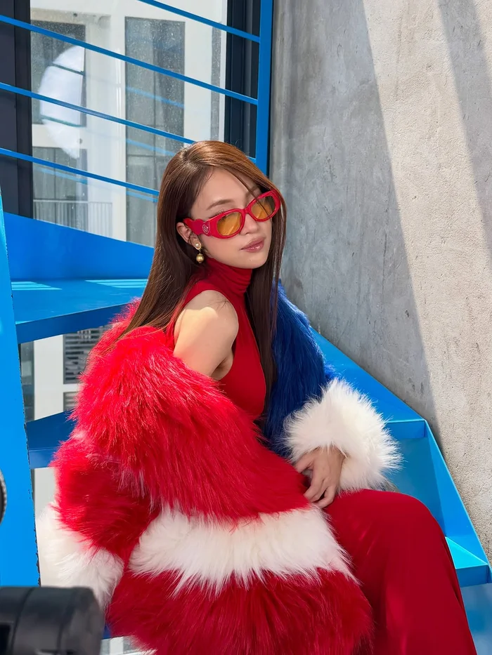 Ở một số khung hình, Khánh Vy xuất hiện với trang phục tông đỏ nổi bật, phối cùng áo khoác lông nhiều màu sắc. Cách chọn chất liệu và form dáng ôm sát được nhận xét mang lại cảm giác thời trang, cá tính hơn so với những lần xuất hiện trước đó của nữ MC.