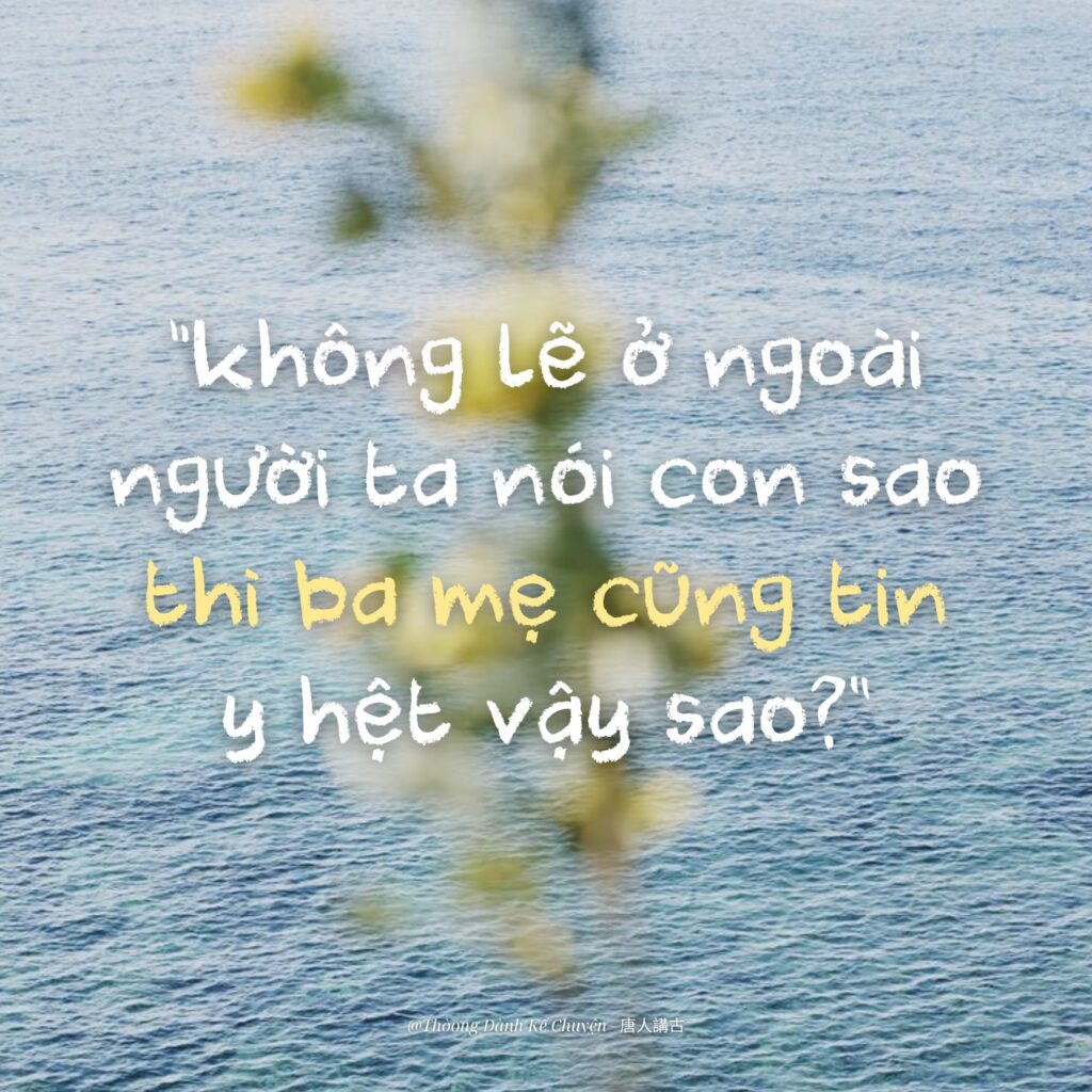 Cha mẹ hiếm khi hiểu trọn vẹn những gì con mình đang làm. Không phải vì họ thờ ơ, mà vì trong lòng luôn có một nỗi lo âm ỉ, sợ đứa con bước ra ngoài kia rồi biến thành điều gì đó họ không kịp nhận ra. Thế giới bên ngoài với họ giống như một căn nhà xa lạ, đèn mở sáng mờ mờ, ồn ào tiếng người, và quá nhiều cánh cửa không biết phải tra chìa thế nào. Cho nên, chỉ cần nghe người ta nói đôi câu, lòng họ đã chao đảo; thấy một lời đồn, trán họ đã nhăn lại; ai hỏi “Con dạo này thế nào?” là miệng họ cười cho qua nhưng tim lại đập thình thịch, sợ lỡ nói sai về chính đứa con của mình.