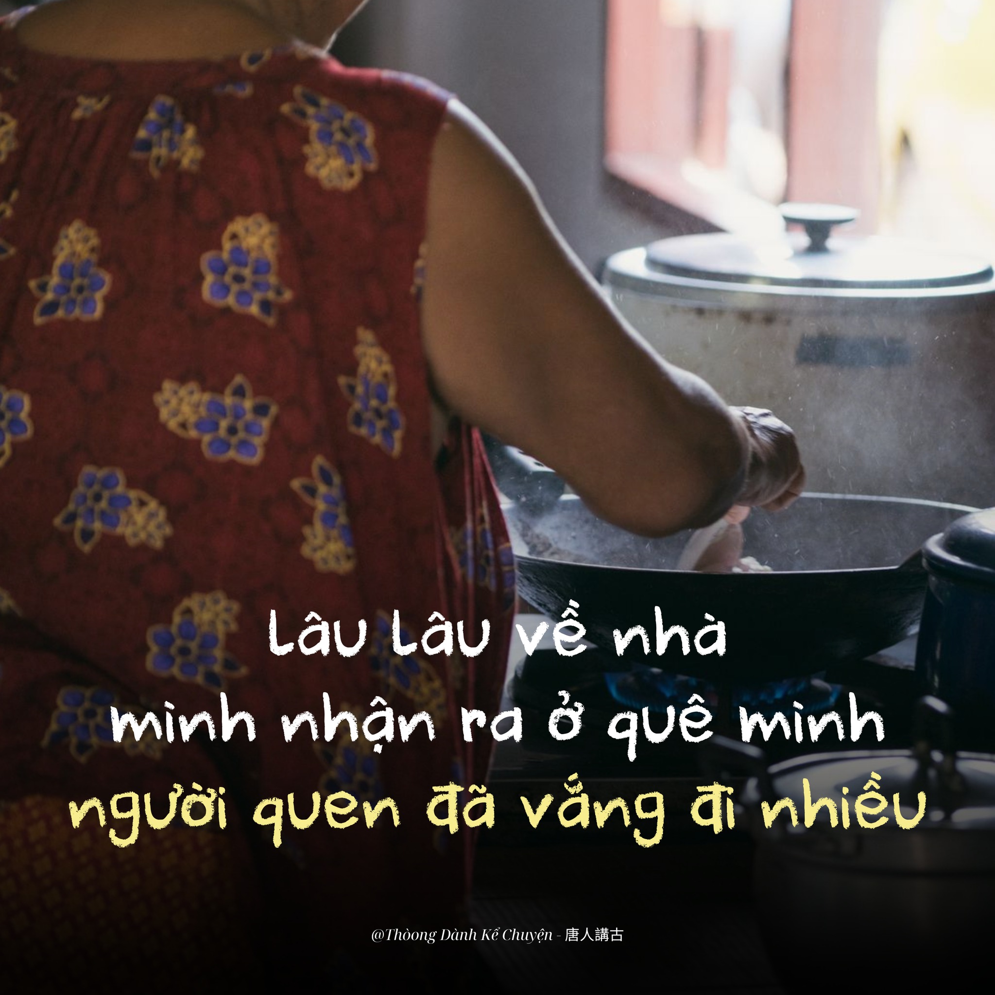 Nhìn lại, mới thấy lứa người bằng tuổi ba má hồi trước, ai nấy khỏe như trâu, làm ruộng từ sáng tới chiều không than, giờ tính lại thiếu một đống. Có người đi nhanh quá chẳng kịp gặp lần cuối, có người mất ở xứ khác, chôn vùi nơi đất lạ, có người nằm xuống trong căn nhà nhỏ, đến chừng xóm biết tin thì hương đã tàn, đám cũng tan từ lâu.