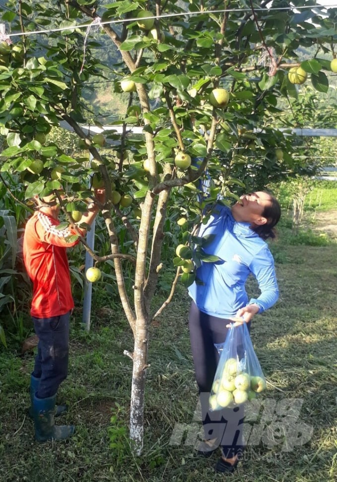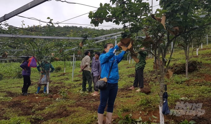 Cũng ở Quang Thành, anh Triệu Kiềm Vạng trồng VH6 từ năm 2016 trên diện tích hơn 5.000 m², tổng cộng trên 200 cây; trong đó chừng 100 cây đã cho thu vụ đầu. Năm 2020, vườn của anh được Trung tâm Khuyến nông và Giống nông lâm nghiệp Cao Bằng hỗ trợ xây dựng mô hình giàn kiên cố để “vin” cành – mục tiêu là tạo tán hợp lý, thuận tiện chăm sóc, phòng trừ sâu bệnh, thu hái và tăng năng suất. Chất lượng quả được thị trường đánh giá tốt, size 300–400 g/quả, giá bán phổ biến 40.000–50.000 đồng/kg. Nhiều hộ cũng áp dụng biện pháp bọc quả để hạn chế sâu bệnh, nâng cao tỷ lệ quả loại 1.