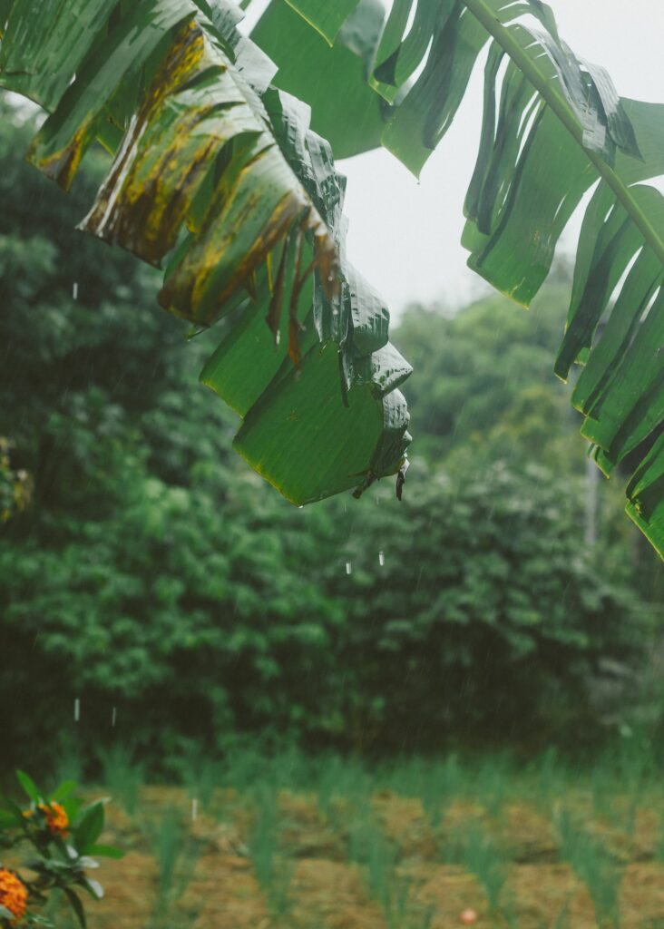 Hồi đó, mưa miền Tây có cái tánh hệt như bạn thân: tới bất tử, rủ rê một cái là đổ cái rào, rồi ngừng ngang, chừa lại bầu trời mát rười rượi. Đường làng hóa thành sông con, lũ nhỏ tụi tui lội bì bõm qua mấy vũng bùn, ôm đôi dép vô ngực mà chạy băng băng qua cây cầu khỉ trơn lè. Con rạch trước cửa rộn ràng: tiếng ếch nhái um trời, tiếng ghe máy phành phạch, tiếng mưa chạm lên tàu lá chuối nghe “lạch tạch” thiệt đã. Tui nhớ cả tiếng đinh búa của tía chiều nào cũng trèo lên mái, vá miếng tôn bị dột năm trước — “để bữa mưa sau hổng ướt giường con”. Cái thương của người lớn giản dị vậy mà bền dai hơn mọi lời hứa hẹn.