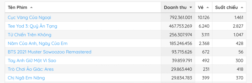 Trước cả khi đón khán giả đầu tiên vào khung 18:00 ngày 16/10, phim Việt Cục Vàng Của Ngoại của đạo diễn Khương Ngọc đã bất ngờ đứng đầu bảng xếp hạng phòng vé Việt Nam nhờ lượng vé đặt sớm áp đảo, vượt nhiều tựa phim đang chiếu (trong đó có cả phim 18+ Thái Lan). Sức nóng được cộng hưởng sau họp báo tối 15/10, nơi tác phẩm nhận về loạt phản hồi tích cực từ truyền thông và khách mời.
