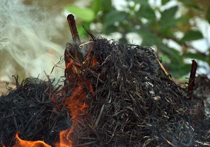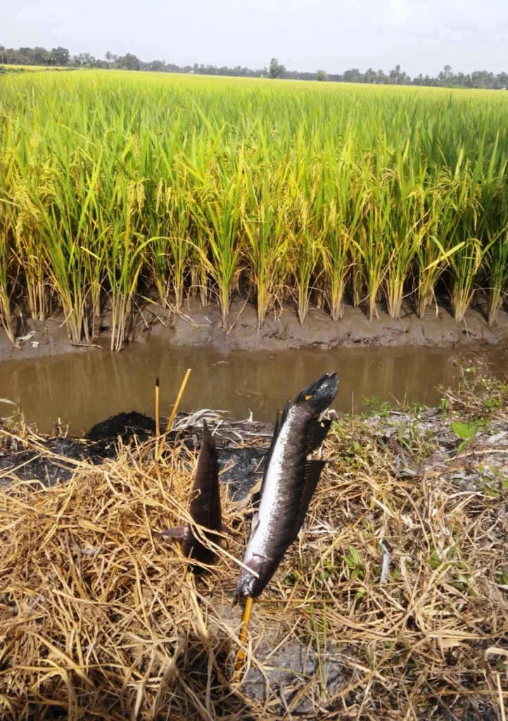 Cá lóc—loài cá nước ngọt khỏe, thịt chắc—khi “trui” được giữ nguyên vảy, không mổ bụng, không tẩm ướp cầu kỳ. Con cá thường được xiên dọc bằng cành tre hoặc cây mía, cắm xuống đất và phủ rơm khô, đốt đến khi lửa lụi. Lúc đó, lớp vảy ngoài cháy xém tạo “áo giáp” giữ hơi nước, còn phần thịt bên trong vừa trắng, vừa ngọt. Khâu này đòi hỏi người nhóm lửa canh nhiệt đều tay: quá lâu cá sẽ khô, quá nhanh cá sẽ tái, đánh mất độ ngọt tự nhiên.
